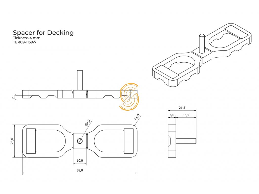 Zjednoduší montáž a zároveň chrání dřevo v místech, kde se nejvíce drží vlhkost. Naše distanční podložky se speciální konstrukcí s vylepšenou ventilací vytvoří prostor, díky kterému může dřevo po namočení rychle osychat a zároveň vymezují spáru mezi prkny, takže zjednoduší montáž.Doplňkové parametry